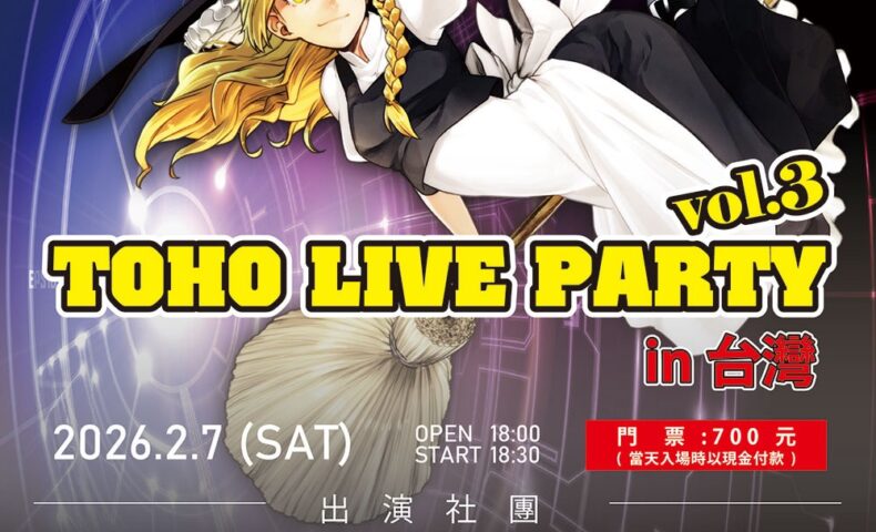 TOHO LIVE PARTY in台湾vo.32026年2月7日(土)OPEN18:00/START18:30会場 杰克音樂mini(台北市萬華區昆明街76號)料金 700元出演CrazyBeats、舞々、Crest、DiGiTAL WiNG、Re:Volte、SAKURA BEATS予約フォームhttps://forms.gle/…